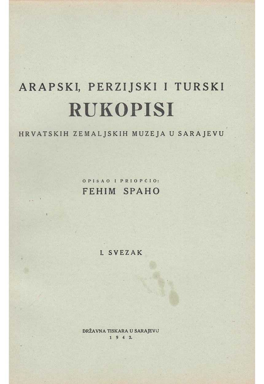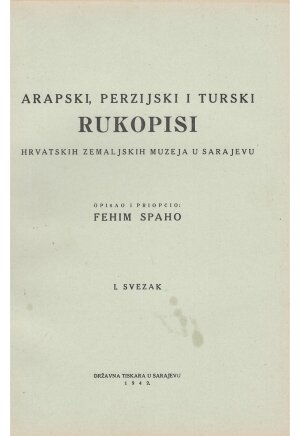 ARAPSKI, PERZIJSKI I TURSKI RUKOPISI HRVATSKIH ZEMALJSKIH MUZEJA U SARAJEVU