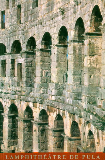 Amfiteatar je smješten 200 metara sjeveroistočno izvan gradskih zidina Pule, u skladu s mrežom rimske zemljišne podjele. Smatra se da je gradnja počela već za cara Augusta (27. pr. Kr. - 14. pos. Kr.), a financirala se iz središnje državne blagajne u rimskoj carskoj vlasti. Dvije središnje osi vanjskog zidnog plašta mjere 132,5 m i 105,1 m, a najveća visina iznosi 32,45 m. Amfiteatar je građen u tuskanskom stilu i zauzima površinu od 11.466 m². Procjenjuje se da je mogao primiti približno 23.000 gledatelja. Podignut na padini brijega, na zapadnoj strani, okrenutoj prema moru, pulski amfiteatar ima četiri etaže - povišeni temelj s ulazima i tri kata, dok je u istočnom dijelu na prirodno povišenom terenu zidani dio objekta znatno manji: nad zemljom se izdižu samo dva gornja kata. U glavnoj osi na vanjskom plaštu amfiteatra nalaze se lukovi širine 4 m, veći od ostalih, naglašavajući glavne ulaze (portae pompae). Ulaz na južnom kraju bio je najznačajniji, jer je okrenut prema gradu. Na toj se strani nalazio i glavni ulaz u borilište. Drugi kat gledališta zidan je cijelim opsegom amfiteatra u 72 polukružne arkade. Treći kat pripadao je galeriji ovalnog prstenastog oblika, natkrivenoj kosim krovom od keramičkih ploča i kupa, koja je za razliku od donjih katova prema van bila otvorena u 64 četvrtasta prozora. Vijenac na vrhu drugog kata nosio je postolja za umetanje drvenih jarbola koji su nadvisivali amfiteatar. Opasnost od ispiranja i klizanja terena uslijed kiša umanjena je izgradnjom sustava kanala za prihvat i odvodnju oborinskih voda. Borilište u sredini amfiteatra mjeri 67,9 m po dužoj osi i 41,6 m po kraćoj. Ovalni oblik borilišta bio je idealan za povorke, postrojavanja, razvoj borbene strategije, napredovanje i povlačenje oružanih skupina. Ispod borilišta smještena je pomoćna podzemna prostorija, većim dijelom uklesana u živu stijenu i dijelom nadozidana do potrebne visine. Služila je za držanje kaveza za zvijeri i raznih tehničkih pomagala za pripremu igara. U slučaju lošeg vremena, gledalište se natkrivalo platnom uz pomoć sistema kolutova i užadi. Drveni jarboli, nosači platna, prolazili su kroz predviđene otvore na kamenom oluku. Na drugom kraju, iznad rubova borilišta, nalazio se metalni obruč poduprt okomitim jarbolima. Užad razapeta između vanjskih jarbola i unutrašnjeg metalnog obruča nosila je platno.