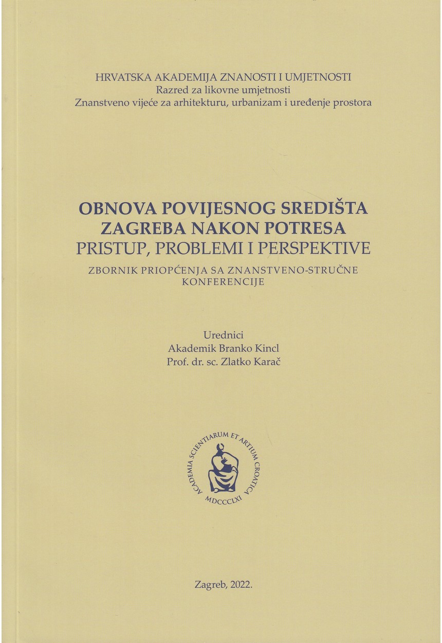 Zbornik radova znanstveno-stručne konferencije Obnova povijesnog središta Zagreba nakon potresa – pristup, problemi i perspektive, donosi radove brojnih znanstvenika i stručnjaka različitih struka koji su svojim znanjem i prijedlozima pridonijeli obradi ključnih tema u procesu obnove nakon potresa. Zbornik će poslužiti svima uključenima u obnovu, a cilj mu je ukazati na višeslojnost problema obnove na koju je jedino moguće odgovoriti interdisciplinarnošću u rješavanju problema obnove te na organizacijske, inženjersko-tehničke, urbanističko-arhitektonske, sociološke, spomeničke i druge aspekte obnove.